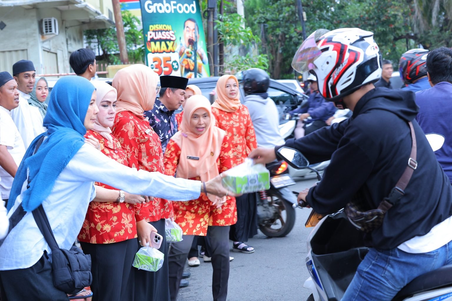 Setelah itu, kegiatan dilanjutkan dengan pembagian takjil kepada masyarakat di sekitar kantor serta para pengendara yang masih berada di jalan saat waktu berbuka puasa tiba.