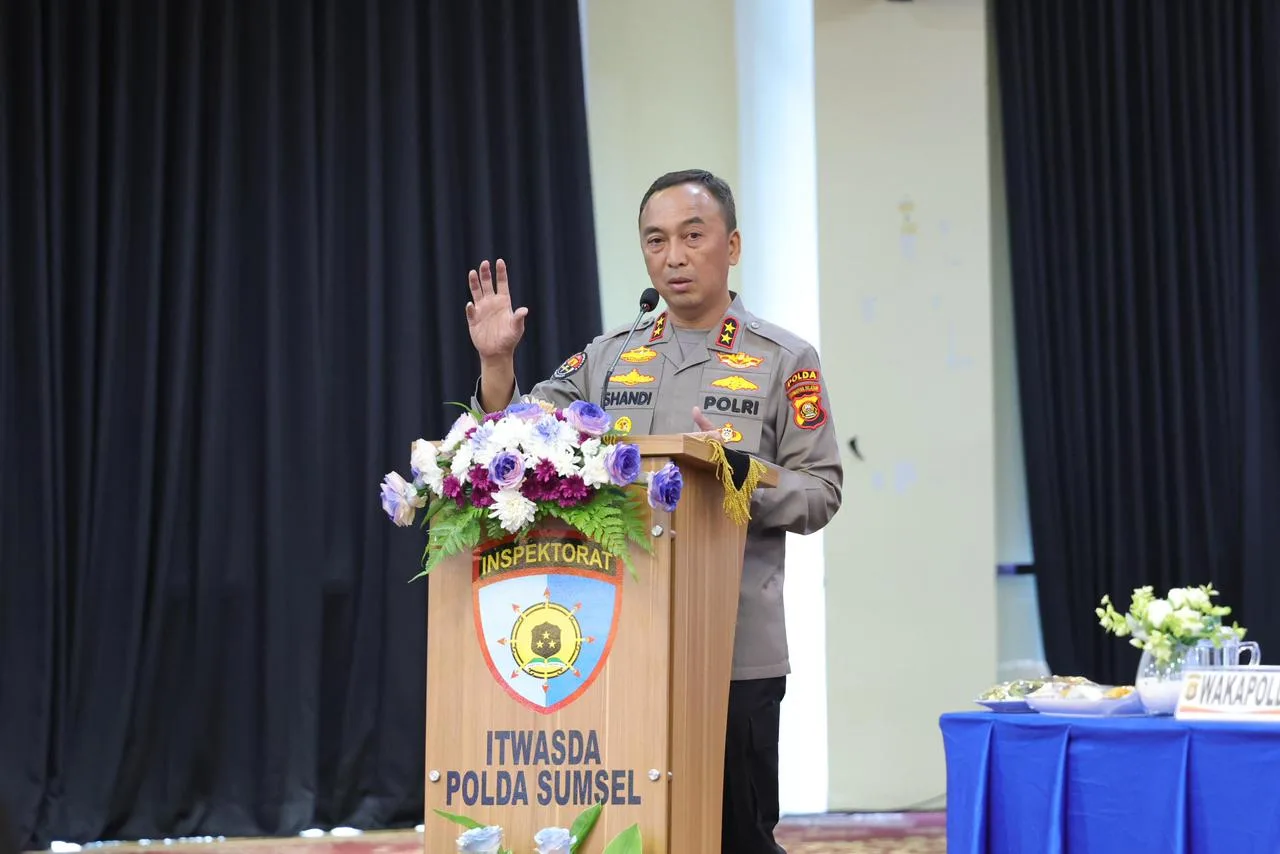 Komitmen tersebut ditegaskan langsung oleh Kapolda Sumsel Sandi Nugroho saat membuka Taklimat Awal Audit Kinerja Itwasda Polda Sumsel Tahap I Tahun Anggaran 2026 di Auditorium Gedung Presisi Polda Sumsel, Palembang, Rabu (8/4/2026).