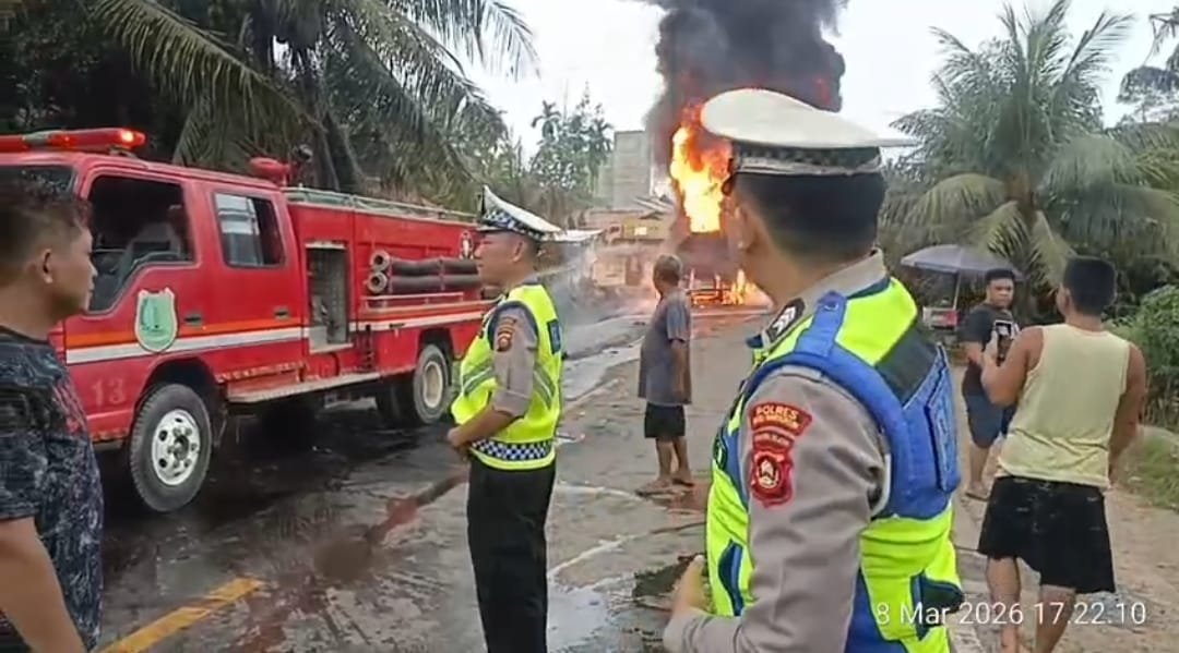 Kecelakaan di Km 182 Bayung Lencir, Truk Tangki BBM Terbakar Usai Tabrak Tronton Box yang Antre Macet