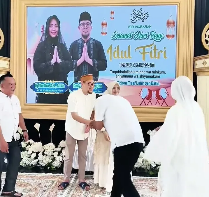 Warganet – Takbir Bergema di seluruh penjuru negeri ini menyambut hari kemenangan bagi Umat muslim sama halnya di kota Pagaralam Suasana khidmat dan penuh rasa syukur menyelimuti Lapangan Sepak Bola Terminal pada Sabtu pagi (21/03/2026). Wakil Wali Kota, Hj. Bertha, bersama Staf Ahli TP PKK, Dedi Suryadi Lagoan, bergabung dengan masyarakat untuk melaksanakan ibadah Sholat Idul Fitri 1447 Hijriah bersama Ribuan masyarakat.